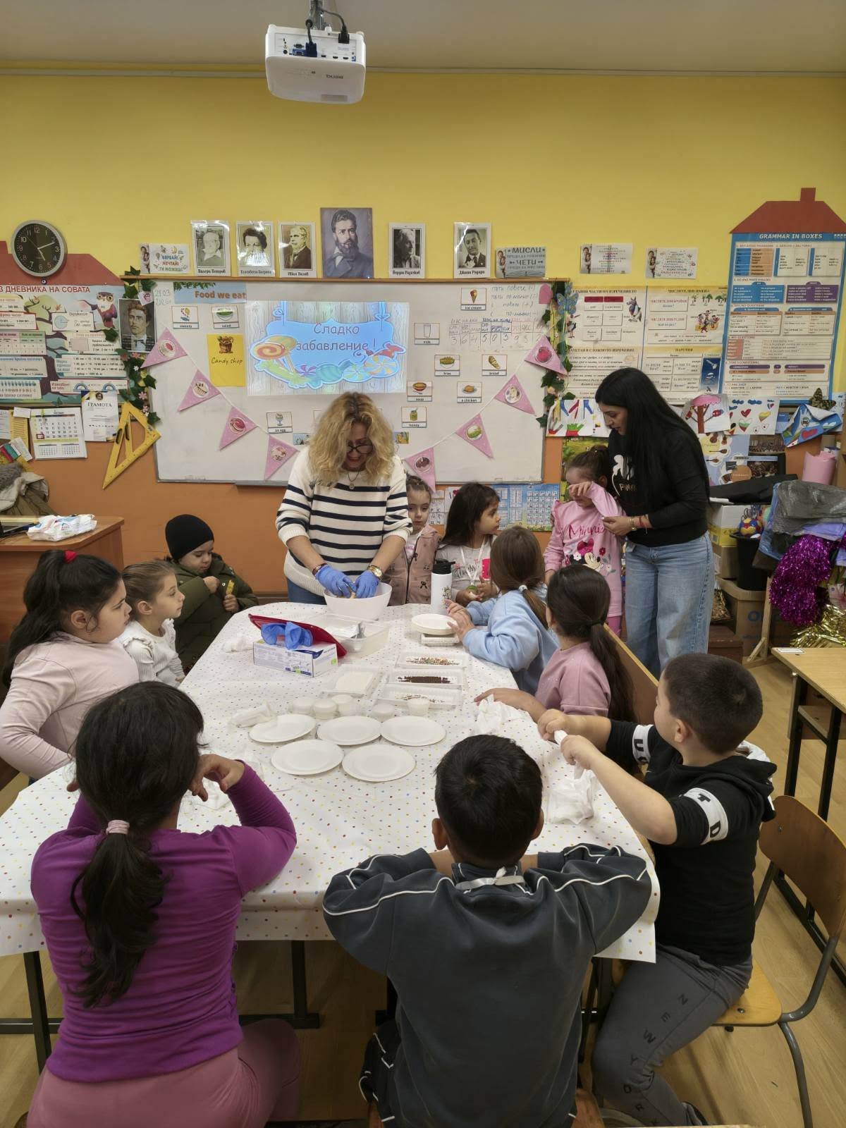 Нашето училище отвори широко вратите си, за да посрещне най-слънчевите си гости – бъдещите първокласници! Коридорите ни оживяха от детски смях и любопитство, а колегите от начален етап бяха подготвили истинска магия във всяка класна стая.